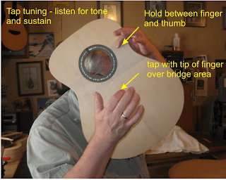 and you’ll get a note. Sure, the note will contain harmonics, overtones, and whatnot, but a note of determinate pitch will be mostly what you hear. Increase the cavity size by “removing” some of the corn liquor, (first, give your cell phone to a friend for safekeeping), and the note gets lower. This is a Helmholtz Frequency. Guitars demonstrably have them, it’s just that it takes an air compressor gun to blow across the top of the soundhole with sufficient “oomph”.