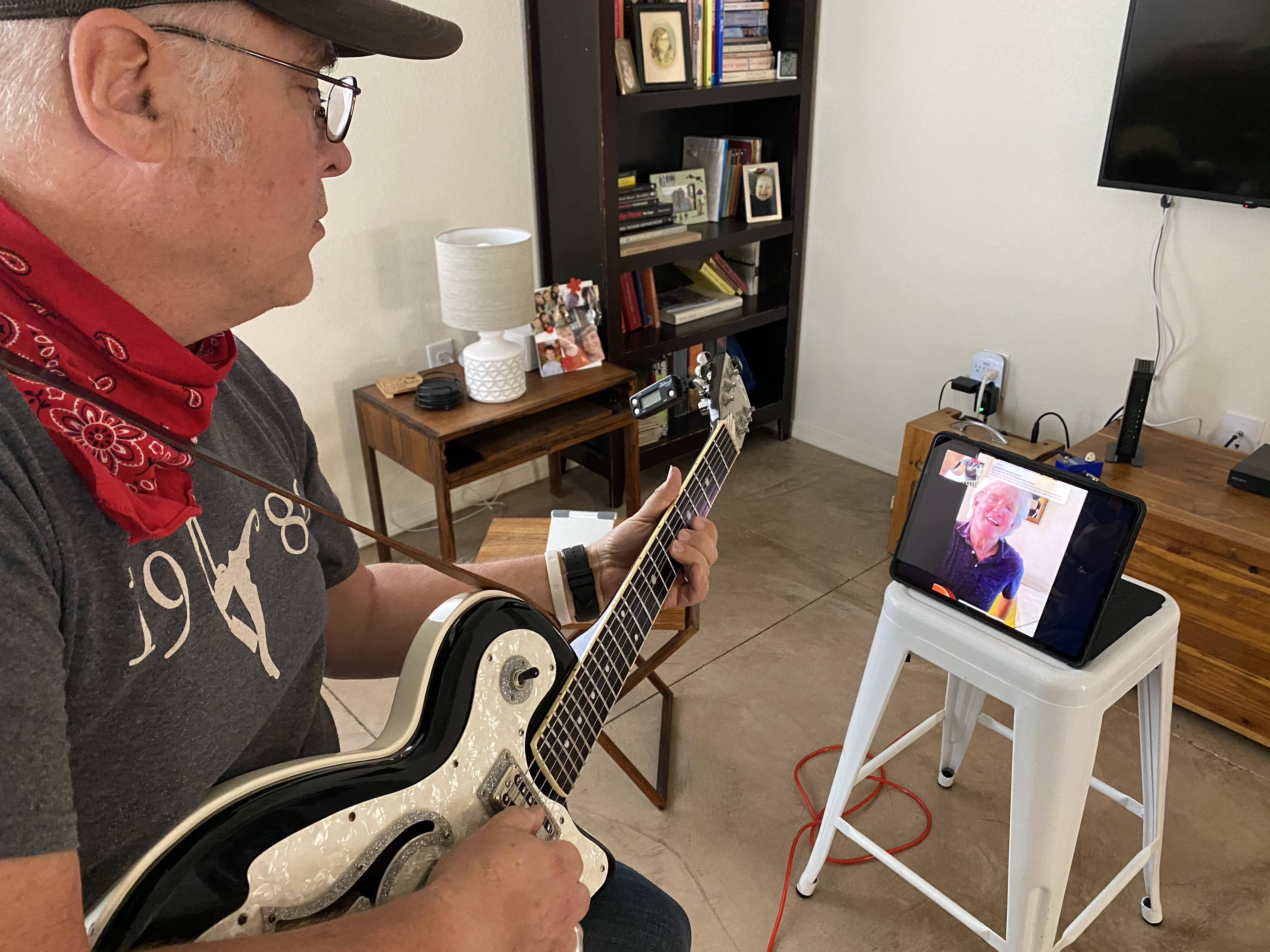 Skype/Google Duo/Zoom/Facetime online is the best! It’s live and interactive, and no one has to drive or schlep gear.